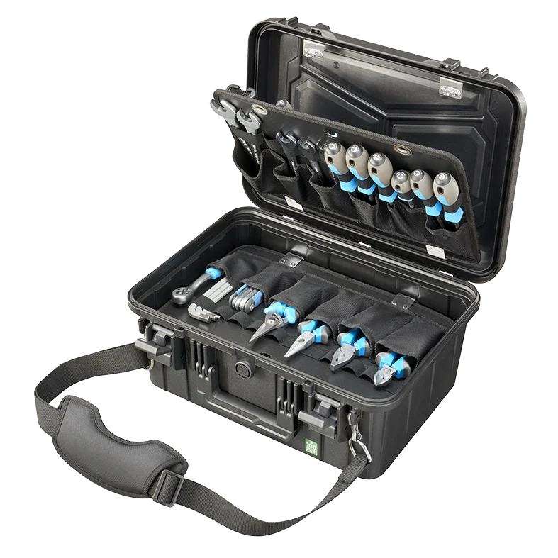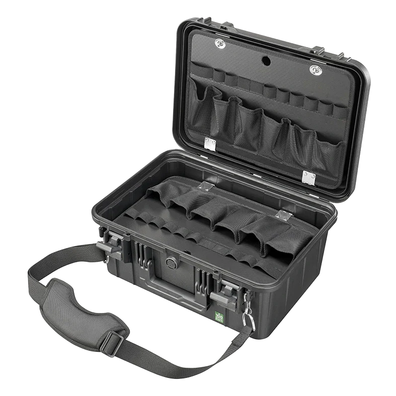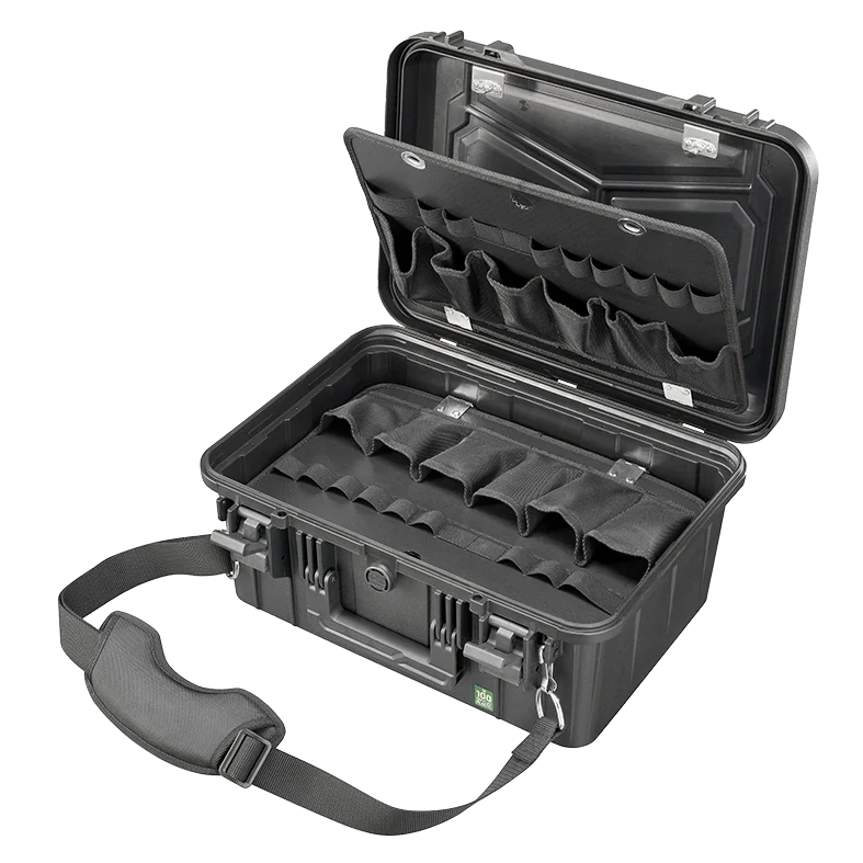 Tool storage panels to better organize your professional instruments. Shoulder strap for an easy carrying.