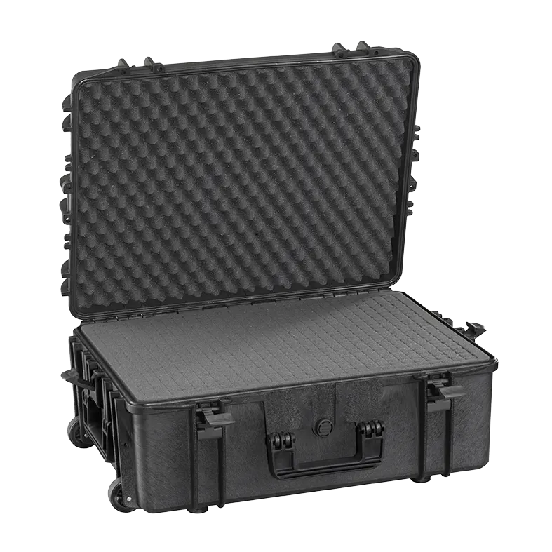 Key Features: - Watertight seal around lid - Automatic pressure release valve - Easy to open double throw latches - Load tested soft grip handle - Holes for double padlocking - Holes for shoulder strap - Stackable interlocking system - Thick body material - Extra fixing points - Fully length hinges - Nylon pins, corrosion free - Cubed foam in the bottom and convoluted foam in the lid (available as standard) - Screen printing space on the lid - Rectangular resin label space on the lid - Extendable handle and wheels (or “Large fold down handle and wheels” for models without telescopic trolley)